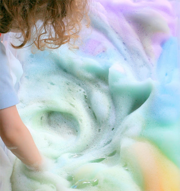 Pictured at the top of this post: Have you noticed how much fun toddlers have simply adding the soap to the bath water, and then sloshing it around to make the bubbles? Well this DIY Rainbow Soap Foam is going to take the fun up a notch. It’s rainbow colored, super bubbly, and kids can have fun with it without taking a bath!