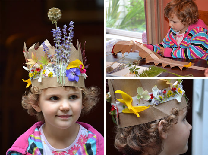 Decorating a crown with leaves and flowers from your yard? This is the perfect craft for all the fairy lovers I know.