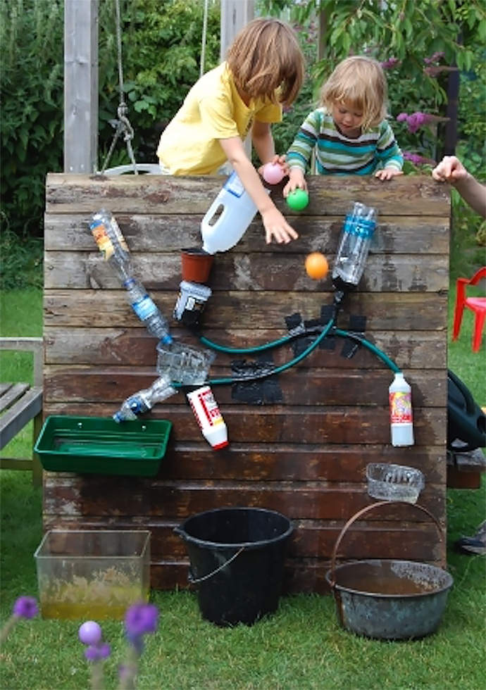 This water wall may be better – and more fun to make – than a trip to our local Children’s Museum. Learning all that cause and effect makes it feel almost educational too.