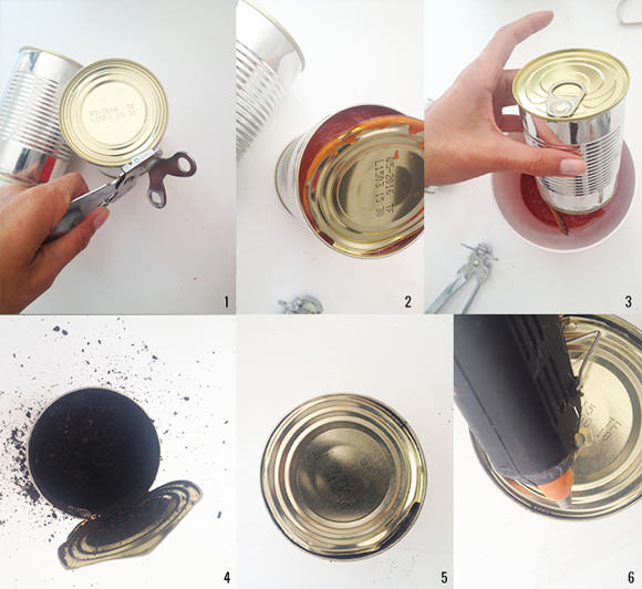 The coolest part of this DIY project is the little trick that you use to keep the pop-top lid intact (spoiler alert: open the can from the bottom and then reseal with a hot glue gun). The printable labels are pretty cool, too:)