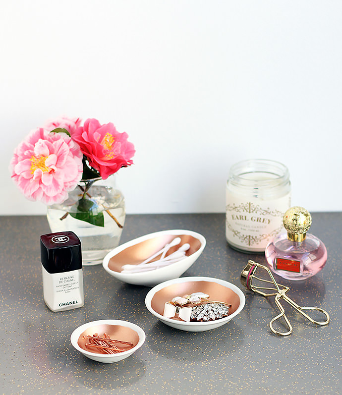 My vanity is sorely in need of an update. Copper would definitely do the trick! All of my jewelry would look better sitting in these bowls.