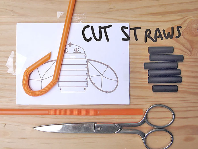Cut straw pieces following template measures. Use bendy straws for wings.