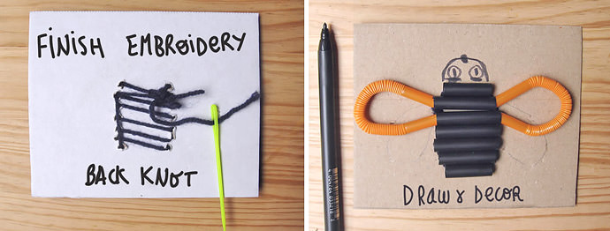 Tie a knot at the backside of the cardboard to finish your embroidery and draw a funny face.