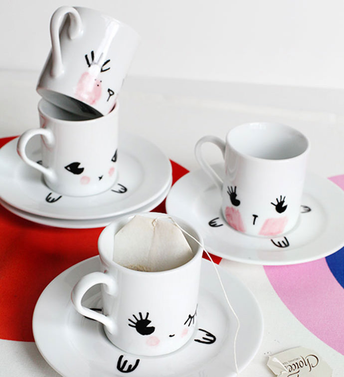 Coffee cups this cute can easily double as tea cups. Just think how many of these you and the kids could make – your supplies are practically limitless!