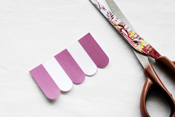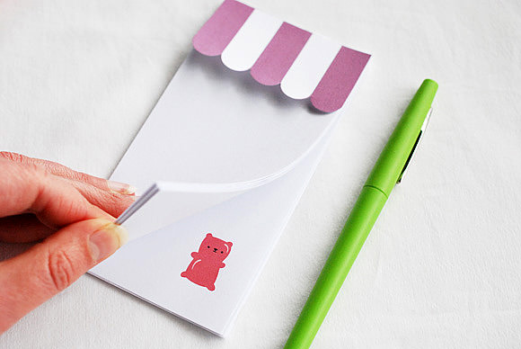 Print page 1 of the Candy Shop Notepad template onto card stock. Choose one of the shop awnings for your notepad and cut it out. Save the rest for making more notepads, because you know you’ll want a bunch!