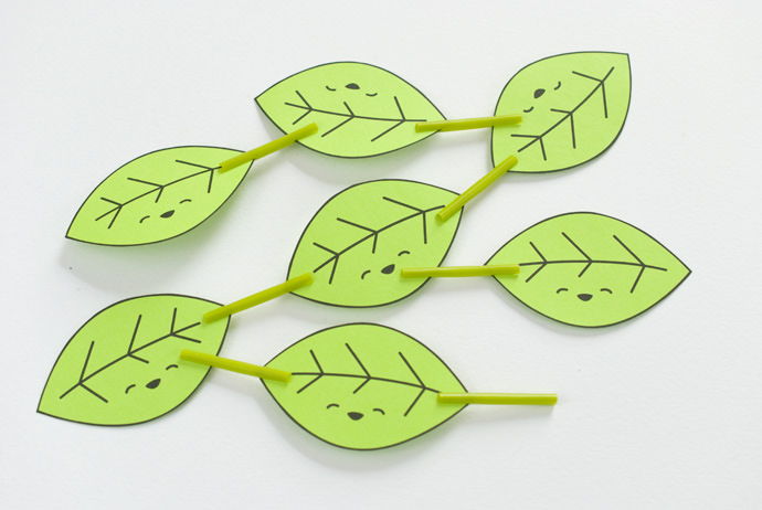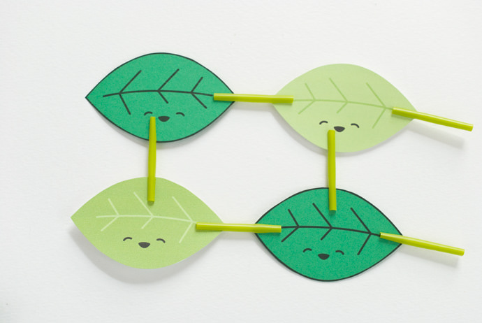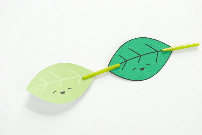 Slide a straw stem on one end of each leaf. This will get you started for building, but it’s also the time when your leaves will look the most like little leaves with stems!