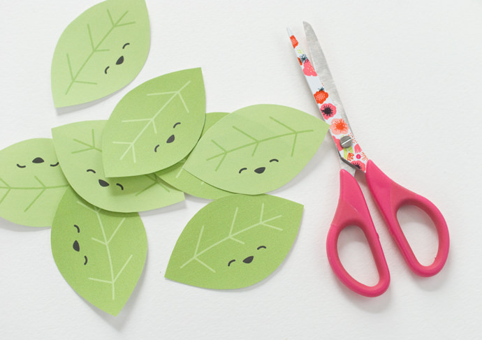 Print the Paper Leaf Stacking Game template on card stock. The PDF has both full-color and black/white versions so you can either print on white or green paper. Make several pages of leaves.