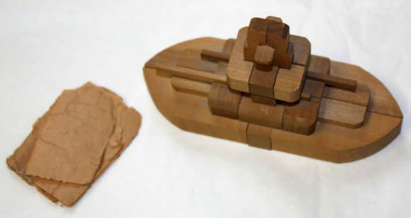 If dad likes a challenge, and you don’t have too much money to spend, this wooden ship puzzle is perfect. The toy appears fairly simple to assemble at first sight, but the instructions diagram is worn and incomplete. An unusual find!
