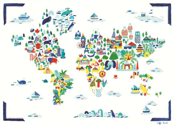 The details in this happy, colorful children’s poster are amazing! Where do elephants live? Can you spot a Russian church? There’s so much to see and learn on this world map. Illustrated by Steffie Broccoli in collaboration with Fine Little Day, the map is perfect for a nursery, play space, or classroom—love!