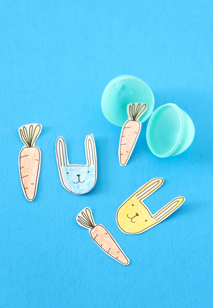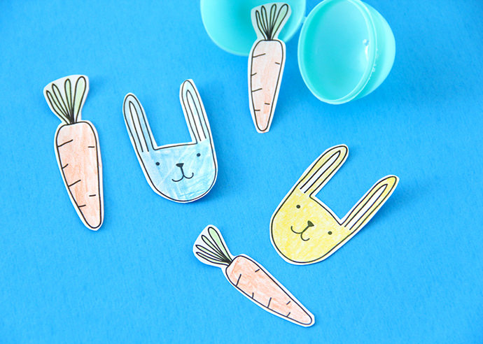 First, download and print off the bunny and carrot printables. There are two sizes of both, just to add a little variety and make them more fun.