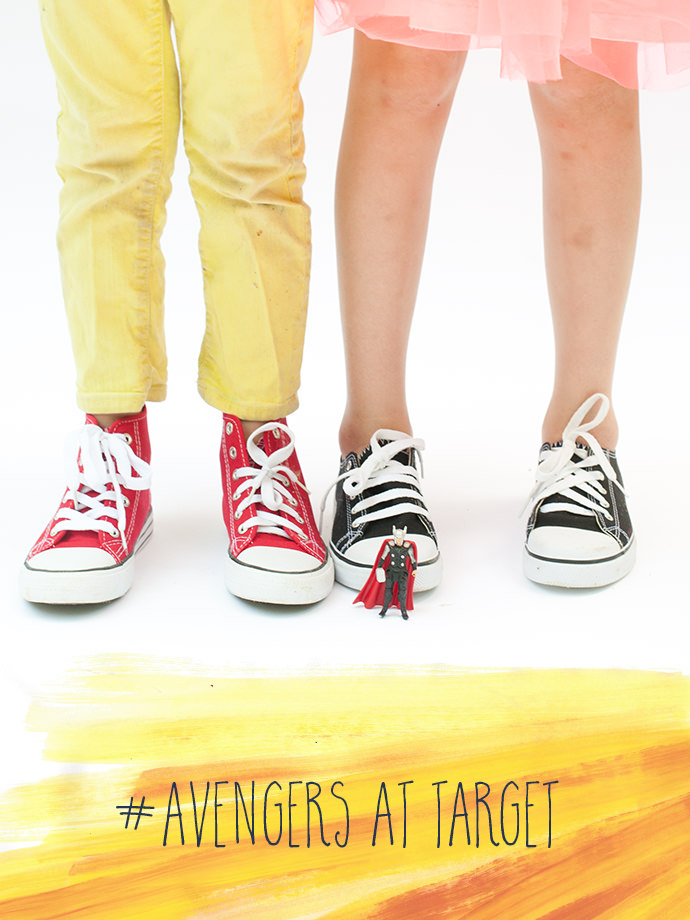 My two youngest children—or, as we call them, “the littles”—often seem to be in an alliance of their own. They’re always sneaking off on their own adventures and scheming against their older siblings. Because of this I wanted create a world for my little dream team and capture their alter egos. So I rounded up the gang, grabbed the camera, and broke out our rad new toys from the Target Avengers collection. I made a few props for an impromptu photo shoot and snapped away as my little heroes set into action. They became bigger than life in each other’s eyes.