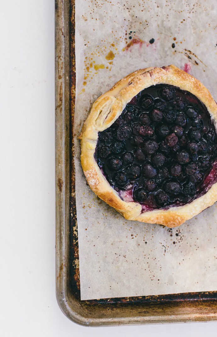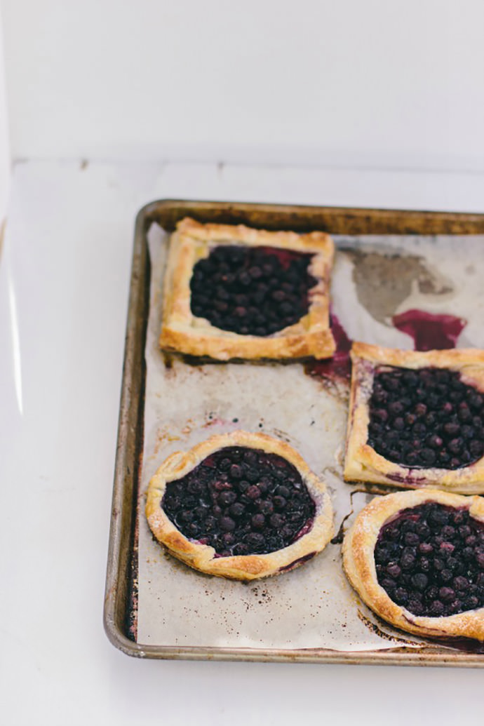 Store-bought puff pastry is fine, but look for one that is made with real butter verses palm or soybean oil. (I will say that while homemade puff pastry is a lot of work, it’s totally worth the effort!) The amount of sugar you add depends on how sweet your blueberries are. Start with a ¼ cup, and add a bit more if they are still too tart. To make the tarts into circles, I traced a small bowl with a sharp knife, then pieced together the outside strips.