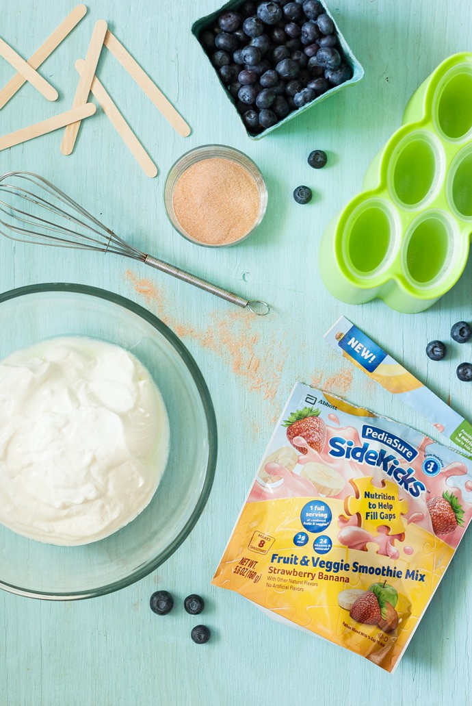 Luckily for him, it is on MY radar and I have a few tricks up my sleeve to help him get all of the nutrients he needs while still satisfying his sweet tooth. One of them is making fun polka dot popsicles with the help of PediaSure SideKicks Fruit & Veggie Smoothie Mix. The mix provides one full serving of fruits and vegetables, helping to fill in the gaps with the top 4 nutrients missing from children’s diets. It also makes a fantastic fruity flavoring for calcium and probiotic-rich frozen yogurt popsicles. All you need are three simple ingredients, a little freeze time, and you’ve got a nutritious treat that packs a punch of vitamins and minerals (24, to be exact!). Your little one will see a creamy sweet treat while you get the satisfaction of knowing that they’re actually getting a lot more goodness than they realize!