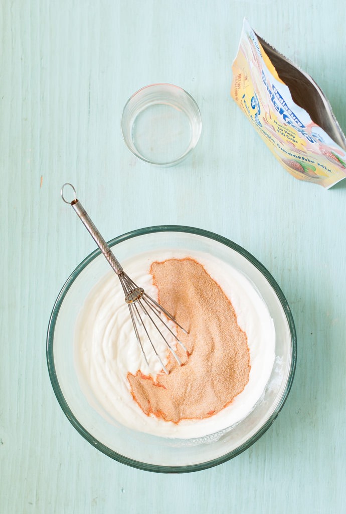 Place the vanilla yogurt in a mixing bowl. Add the smoothie mix and whisk until very smooth.