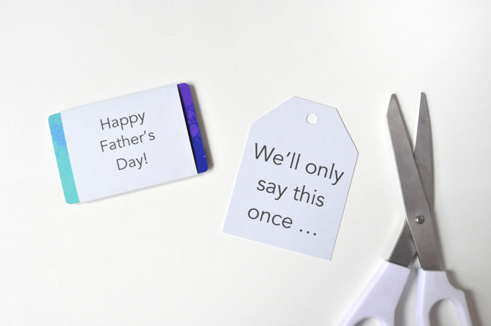 Make a tag that says “We’ll only say this once…” and a little note to attach to your gift card that says “Happy Father’s Day!”
