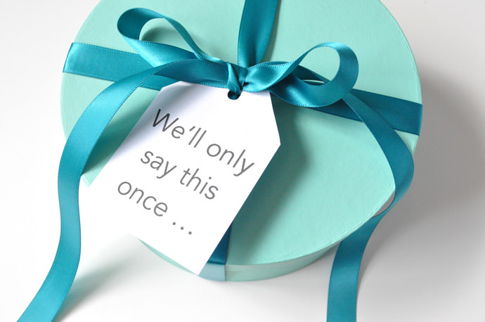 Close the box, tie shut with a ribbon and the tag tied on top.