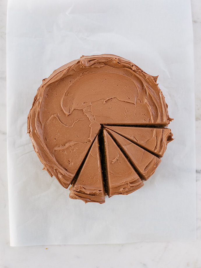 I always turn to pie on Thanksgiving: Pumpkin, Apple, and French Silk are often on my table. While I love making pies, I’ve found that the addition of cake has been well received with my family, with some members even choosing it over classic pastries. This pumpkin cake is very easy to make; it’s actually a pumpkin bar recipe I’ve been making for over 20 years, usually topped with cream cheese frosting. Instead of baking it in a half sheet pan, I’ve moved the batter to cake tins, and top it with chocolate buttercream. It’s a big hit, and a great alternative dessert this holiday season.