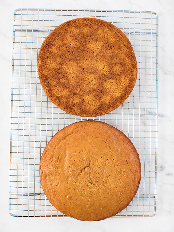 Divide the batter between the prepared cake pans. Bake until the cakes have risen and a toothpick comes out clean, 15-25 minutes. Let the cakes cool completely before frosting.