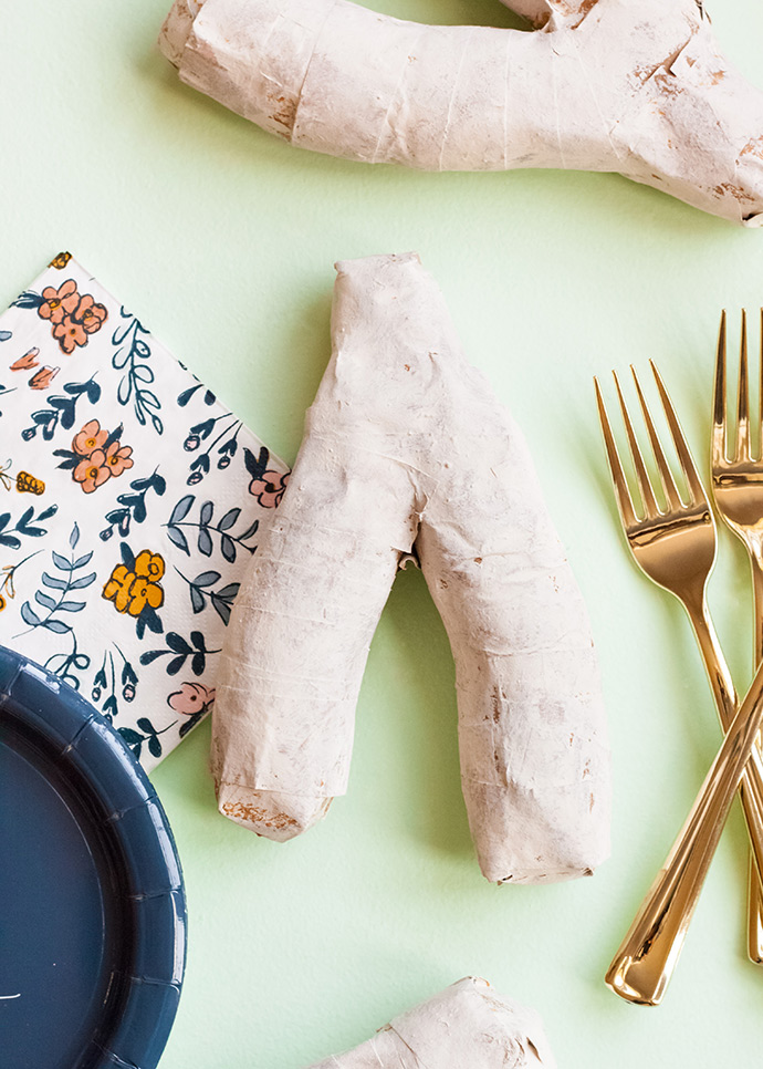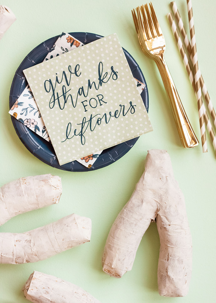 Not only that, but when you break it in half, you can make a wish, and get access to some fun Thanksgiving goodies! These are perfect place cards at the kiddie table, or fun favors for guests to take home. Fill them with fall candies, or small toys to occupy kiddos during the long wait for turkey dinner. These wishbone piñatas also add a touch of whimsy to your Thanksgiving décor.