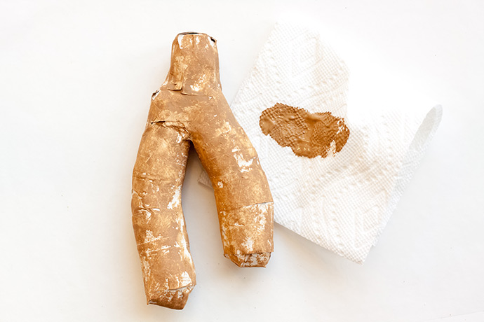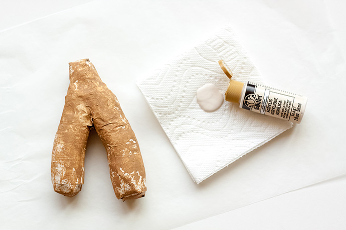 Squeeze some “parchment” colored paint into a paper towel, and rub the paint over the entire wishbone, allowing some of the honeycomb color to peek through.