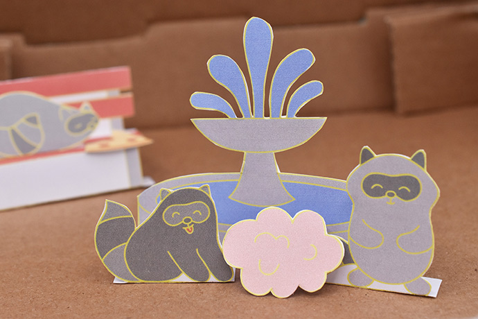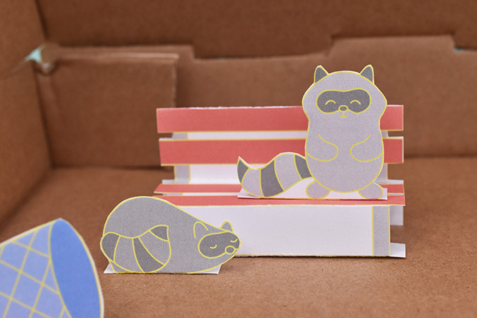 One thing raccoons are known for is digging in trash cans, so we included a few spots for them to look for food. There’s even a piece of cotton candy, just like the cotton candy raccoon gif. (If you haven’t seen it, look it up…it’s both funny and sad!)
