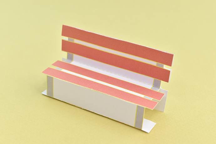 To assemble the park bench, cut around the edge, then score it for folding. Score along: