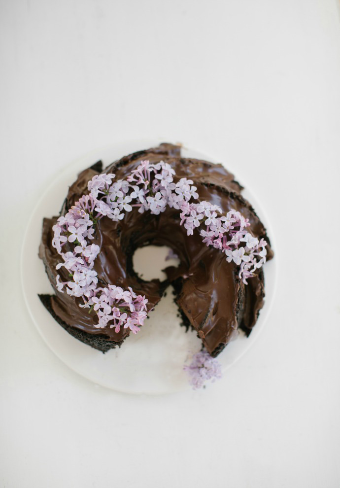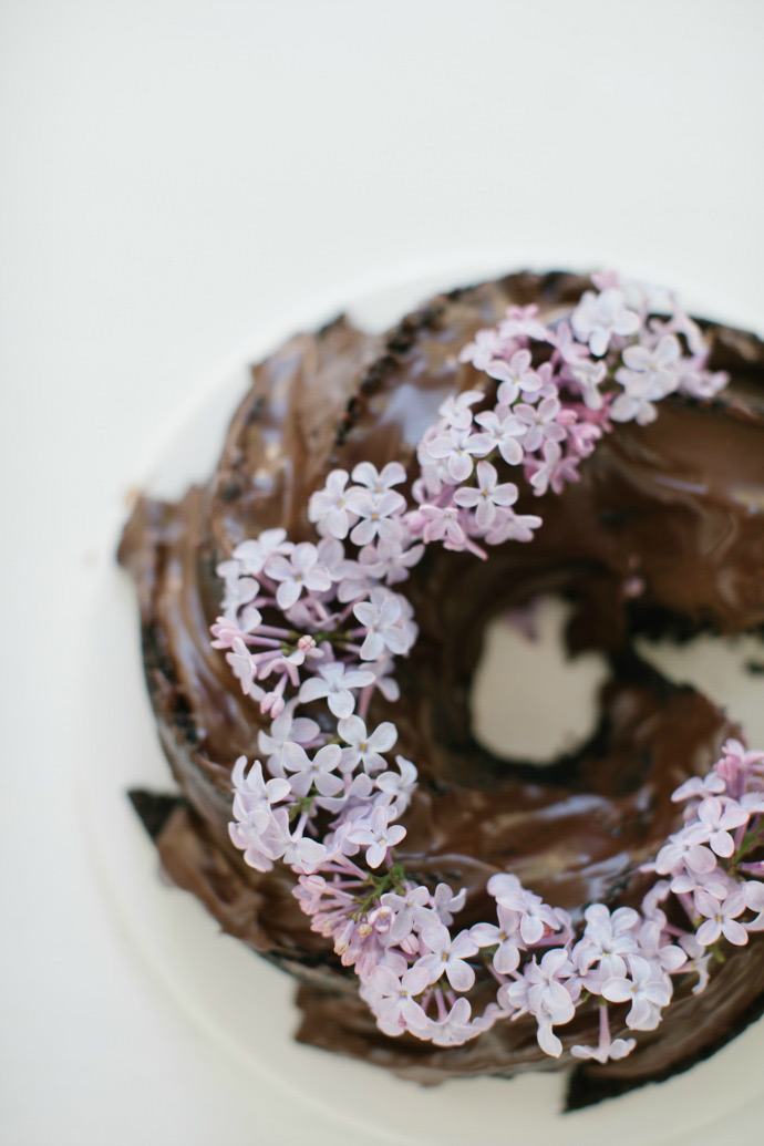 Spring is here! At least, we have our fingers crossed in Minnesota. The weather is gorgeous, the birds are chirping, but it’s still possible to get a snow storm regardless. Our neighbor’s lilac tree is in full bloom, and the fragrance from the blossoms drift through our open windows all day long. I decided to throw some on a simple chocolate cake I was making – the purple flowers were lovely against the dark chocolate, and just a hint of lilac flavor could be tasted (my kids weren’t into actually eating the flowers, so we brushed them off just before indulging). Lilacs are edible, though, so you can go ahead and take a bite if you’d like. Either way, they make a beautiful presentation on any basic cake.