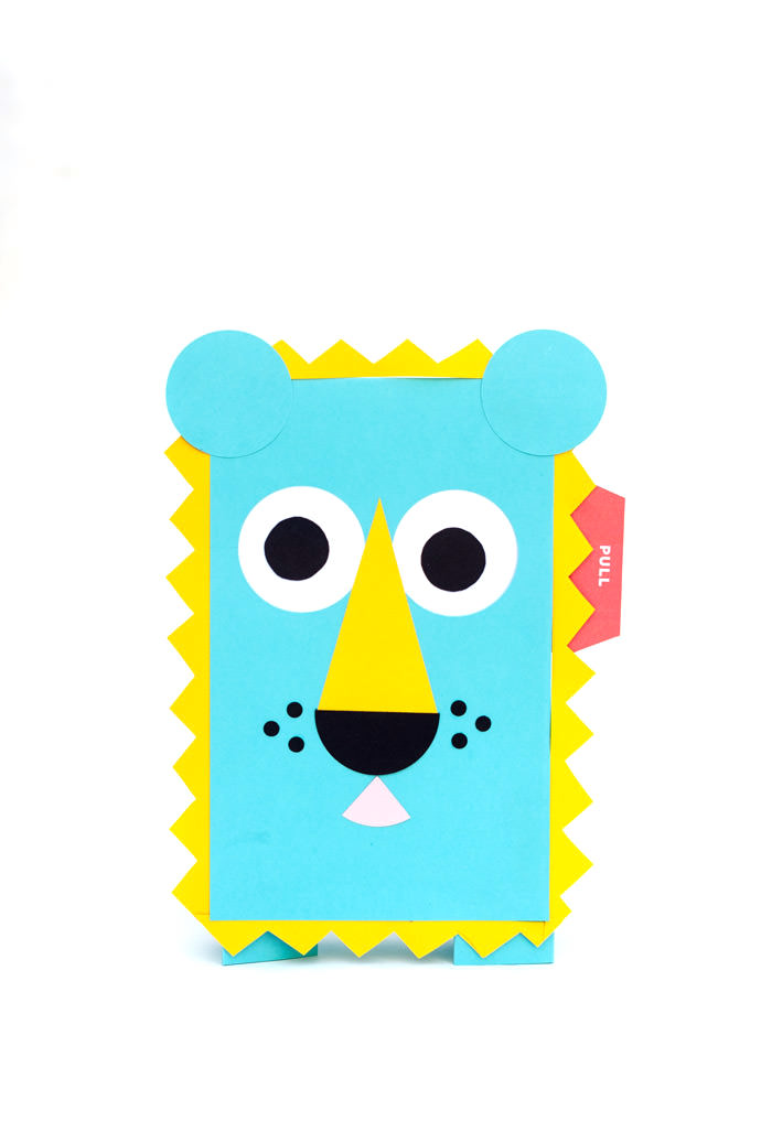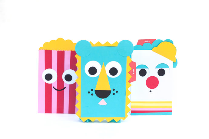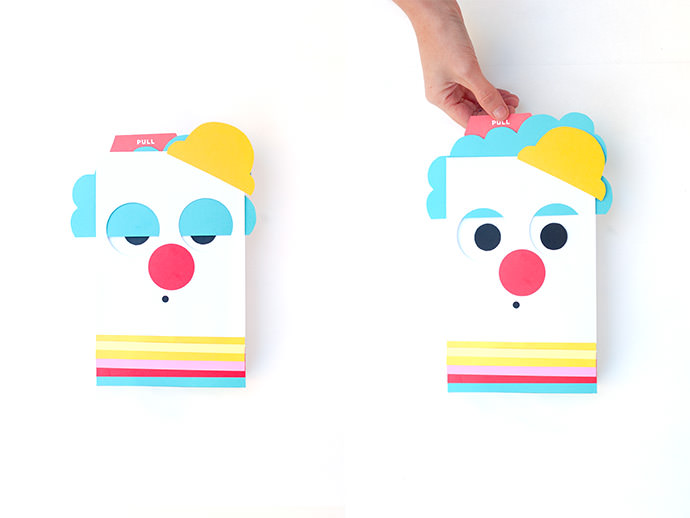 - Next download and print the Circus Pull Tab Gift Wrap Printable to get a template for cutting and assembling each of the circus characters. Attach each facial feature with tape. Glue the round eyes directly to the tab.