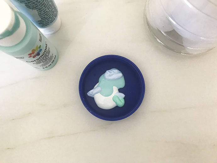 This coming Easter will be my daughter’s first, so lately I’ve been thinking of what traditions we might like to start. She isn’t quite old enough for dying eggs yet, but I thought it would be fun to have her help decorate some eggs that we can put out on display as decoration and have as keepsakes. Each year I thought we could make a new one to add to the collection! I used paintable plastic eggs that you can find at the dollar store or supermarket, but I think it would be so lovely to use wooden eggs here as well. Next year when she’s maybe old enough to do some fingerprint art on a keepsake egg, we might do that on a wooden egg but for this technique, the white plastic ones worked perfectly.