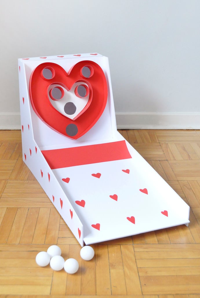 Bring the carnival to your home with this handmade skeeball game! We originally made these for Valentine’s Day, but why not embrace the love all year round with this heart-covered game?