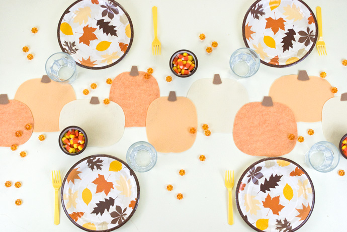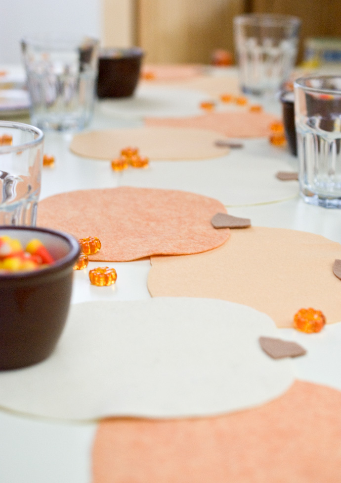 Instead of making a runner, cluster the pumpkins together to make placemats!