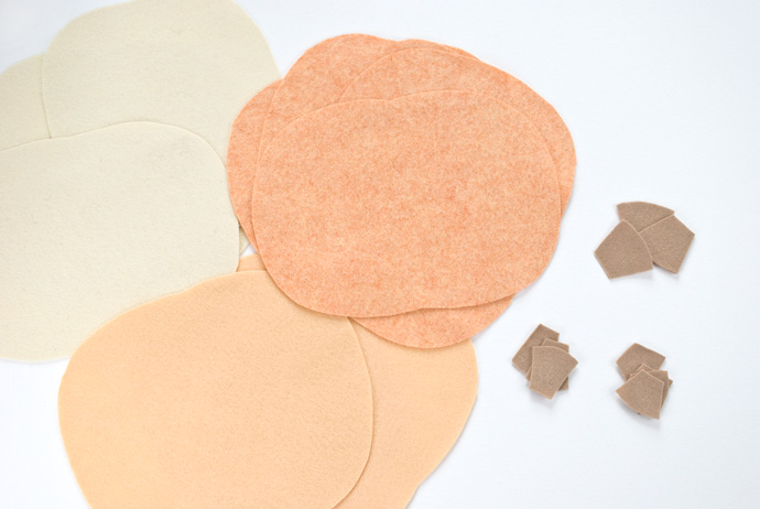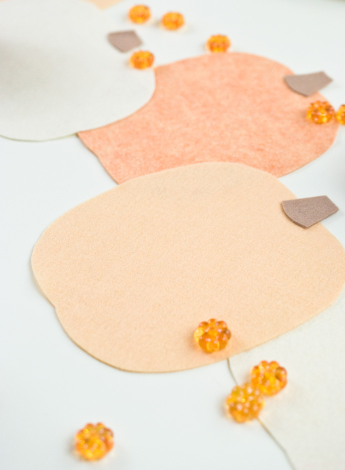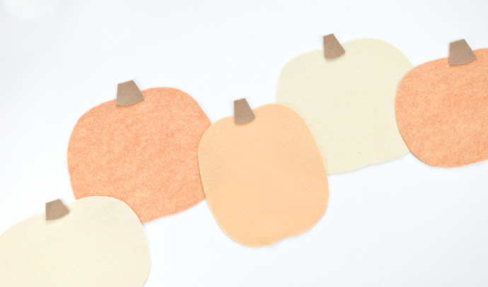 Cut several pumpkin shapes from each color of felt and cut out a tan stem for each pumpkin.
