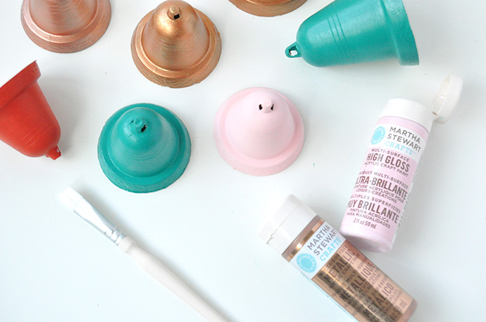 Paint each bell (again inside and out) with metallic and satin paint – we used a mix of both! Let dry.
