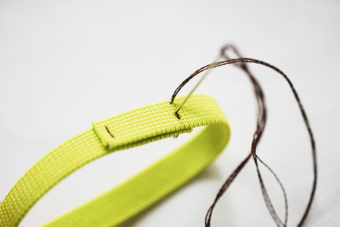 To keep these little books together on explorations, cut a piece of elastic so that the ends overlap by one inch while fitting snugly around the stack of Observation Books. (The piece I used was seven inches long.) Overlap the ends, then use a needle threaded with embroidery floss to stitch down the ends. Be sure to leave a gap in the middle, because this will be used to hold your pencil!