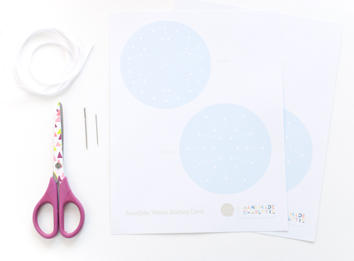 Is it cold where you live? Are you gearing up for snow days and looking for activities to keep kids engaged indoors? These printable snowflake stitching cards use ribbon or yarn to embroider simple designs that won’t melt as you try to stay warm!