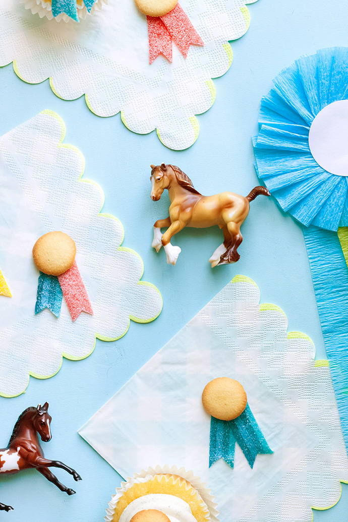 One year we went to our local racetrack to watch it on a big screen, but this year, I think we’ll stay home and have a prize-ribbon cake with the kids. I have always loved vintage horse show ribbons, and that is the inspiration for our little Derby celebration this year. They would also be darling for a county fair or pony party!