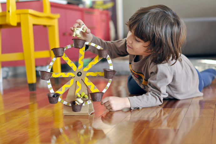 A working  cardboard ferris wheel. Walking  into a toy store would only be a letdown if you grew up in this house!