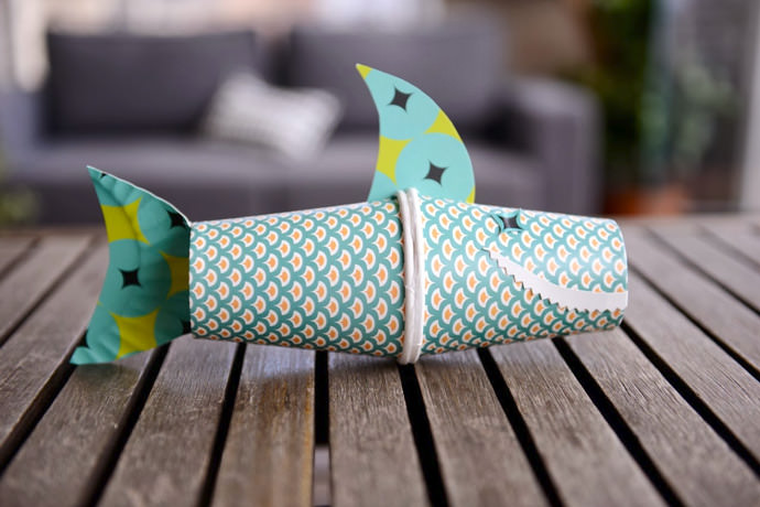 A couple of paper cups and a paper plate equal instant underwater fun with a pet shark by your side.