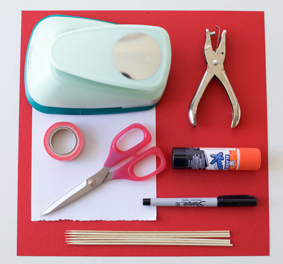 Punch out your red circles using your circle craft punch. Cut your circles in two to form two mushroom domes. Or, use scissors to cut out some half-circle mushroom tops.