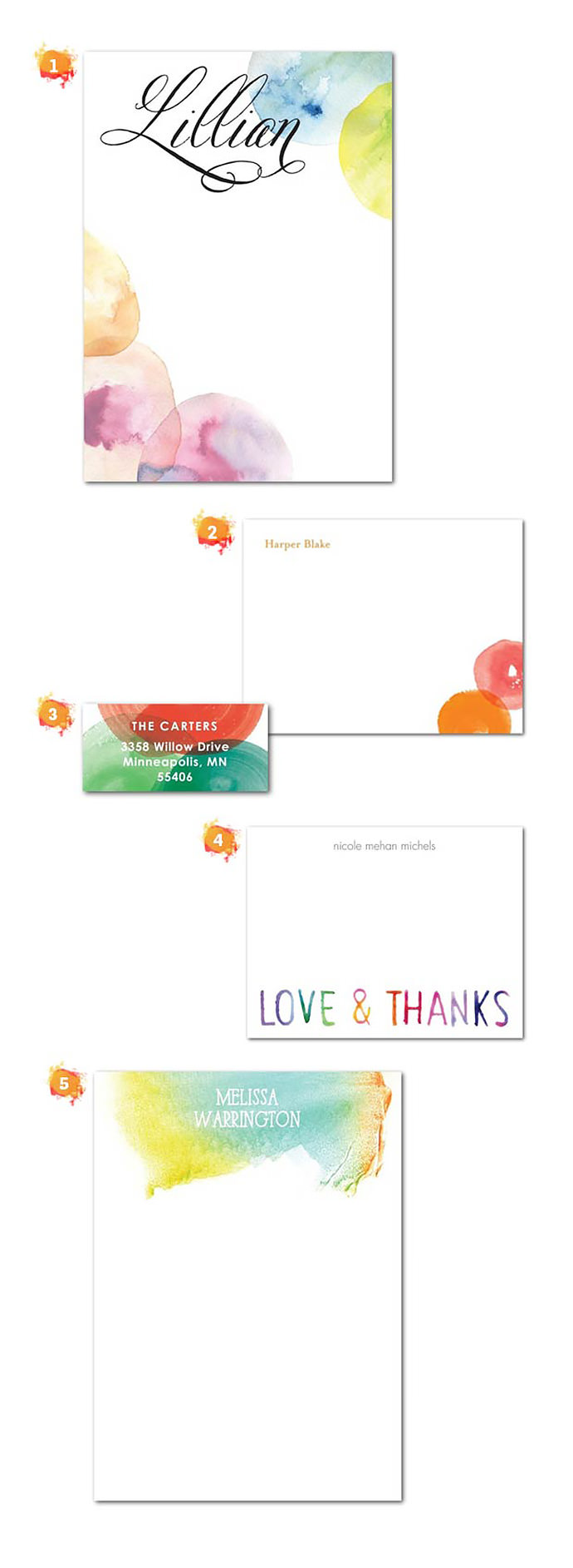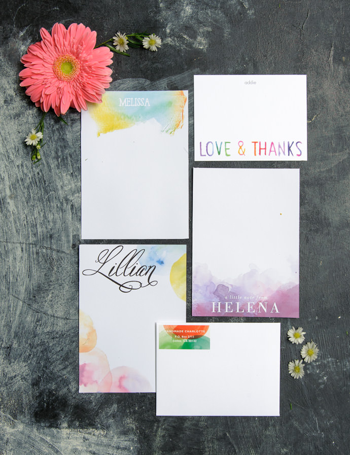 Nothing is more summery than watercolors! We were totally inspired by the dreamy colorscapes floating across the pages of this sweet Tiny Prints stationery.