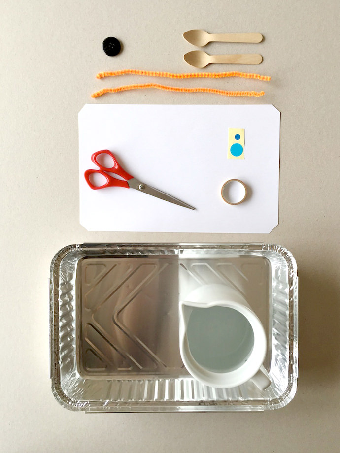 Note: You can also use water-resistant red and blue marker instead of tape and stickers. Metal or plastic spoons work as well.