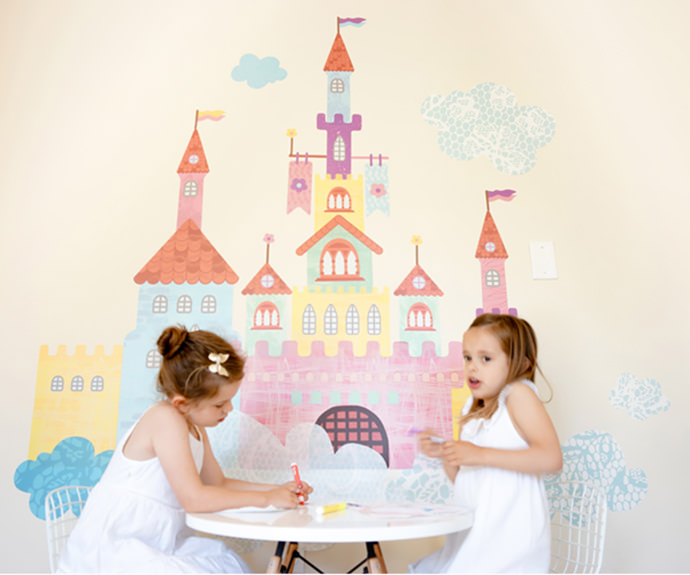Sound the trumpets! The Create-a-Castle decal set allows kids to be the rulers of their very own kingdoms. Sherbert colored towers stretch to cotton candy skies and individual buildings and accessories guarantee that every castle is truly a one-of-a-kind design.
