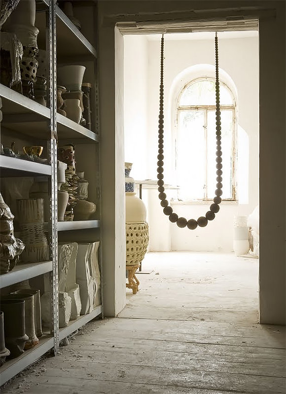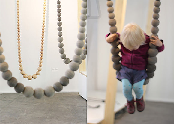 Swing Necklace by Johanna Richter By Handmade Charlotte June 22, 2010 Designed by Johanna Richter as a piece of jewelry for your home, the Swing Necklace is handmade from 10 feet of felt balls.