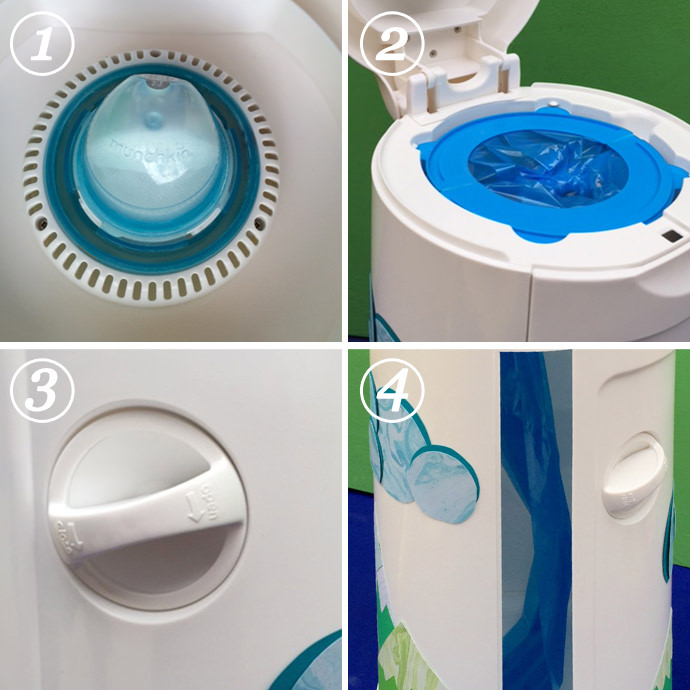 So who is this new nursery superhero – and why is it so super? For one, it comes with a nifty little cup you can fill (and refill) with magic odor-eliminating potion (aka: baking soda, but potion just sounds more fun). Secondly, the bin locks the liner bag in place each time the lid is lowered – sealing the system and making sure all ickiness stays inside. Finally, the easy handle/door combo makes changing the bag swift and simple.