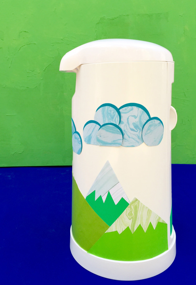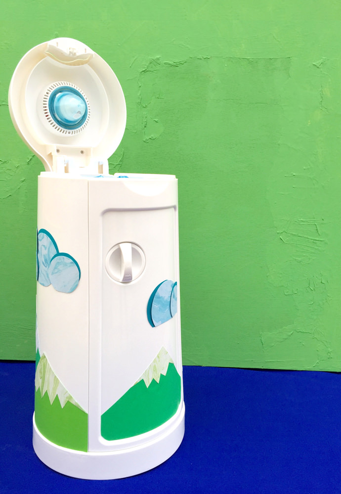 Decorating the nursery has always been one of my favorite nesting activities! I’m a big believer that everything in this sacred space should be fun AND functional (new parents – you’ll quickly learn to appreciate this beautiful balance). Although my kiddos are out of diapers, the Arm and Hammer Diaper Pail by Munchkin blew our minds! With a little bit of maker’s magic, this smell-busting superhero will send those stinky diaps over the mountains, through the woods, to a land far far away from the world of family play.