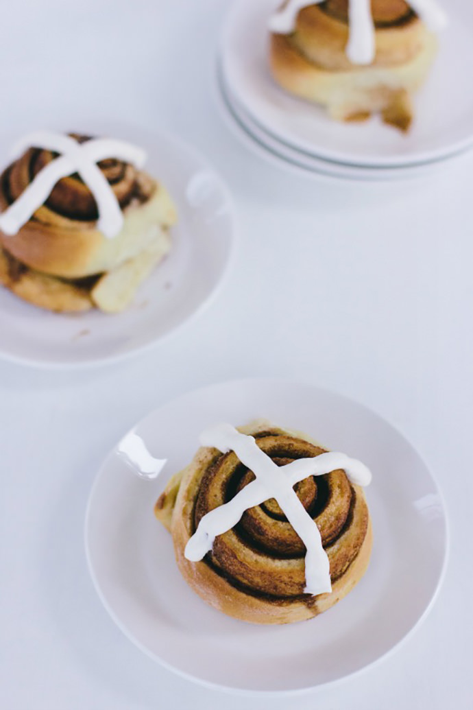 Decorate your cinnamon rolls with cream cheese crosses and enjoy :)