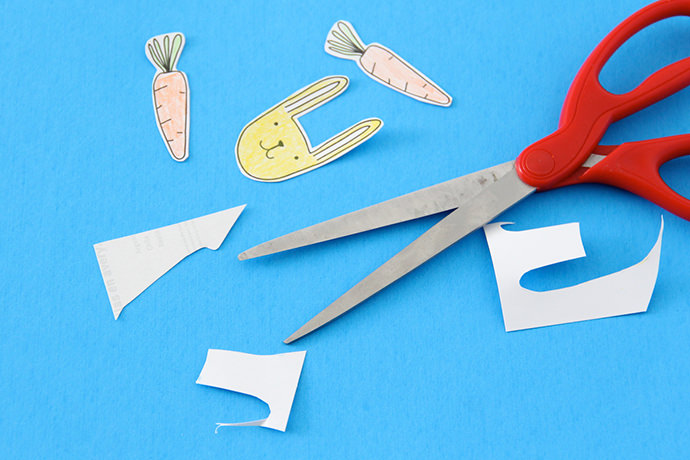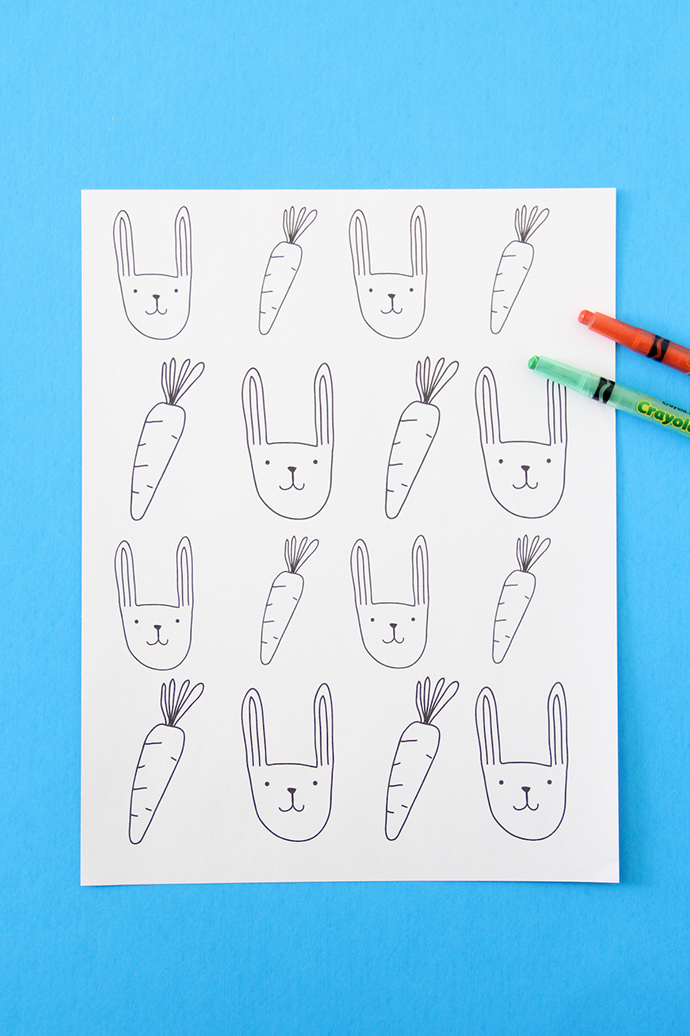 First, download and print off the bunny and carrot printables. There are two sizes of both, just to add a little variety and make them more fun.