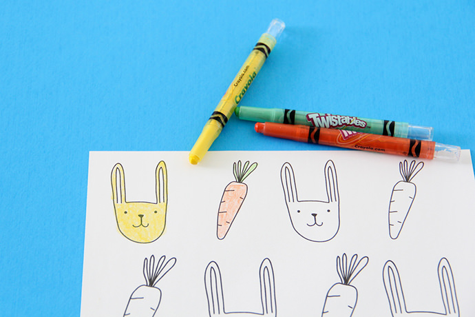Have your little ones color the pictures. There’s no wrong way! Blue rabbits are totally acceptable.