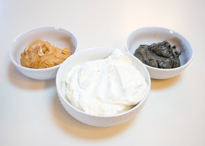 Make 5 cups of vanilla buttercream frosting. Split the frosting into three bowls. Add black and brown food coloring to the smaller amounts (about 1 cup each.) Put the the black and brown frosting into separate piping bags with 1/2-inch round tips.