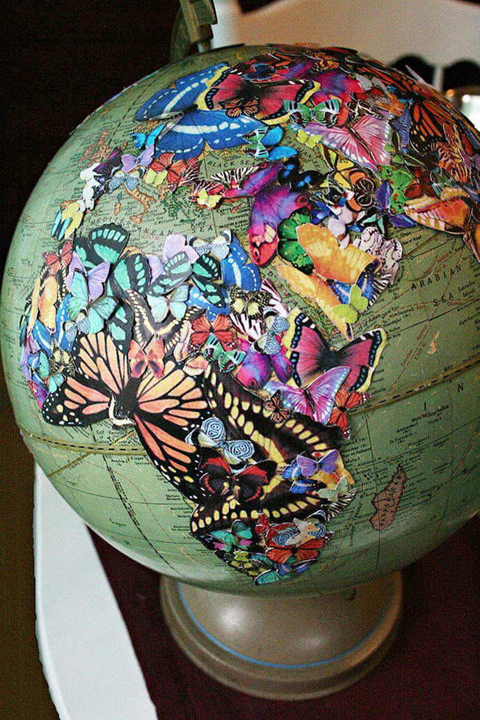 This instantly makes me think of the “chaos theory” – often explained by the famous example of a butterfly’s wings in one area of the world causing a storm in another. But even without that little scientific extra, this globe is absolutely gorgeous.